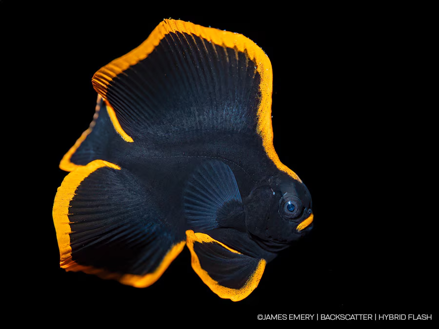 Most TTL systems are not able to expose macro subjects accurately such as this black pinnate juvenile batfish. SC Macro is optimized for perfect exposures even with the most challenging subjects.